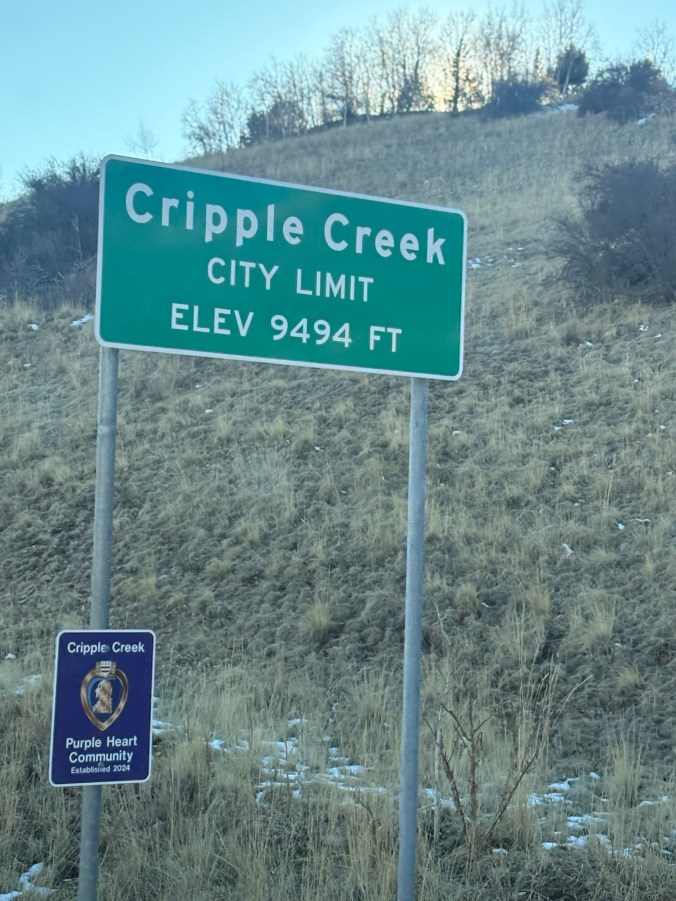 Cripple Creek sits at an elevation of 9494 feet, tucked in a cozy valley behind Pike’s Peak.