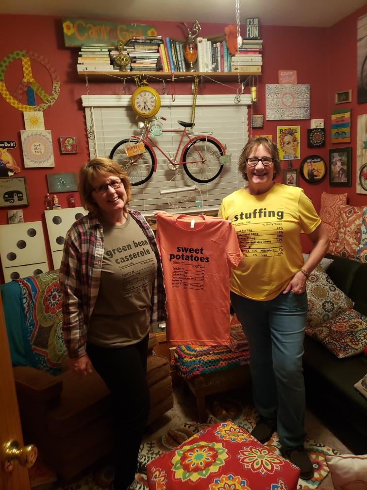 There was but a fraction of the guests at Gail’s annual Turkey Party. Suzanne was there, so they staged this picture in my absence.  The T-shirts are thanks to Gail and her festive spirit, with the original idea credited to her daughter Lydia: