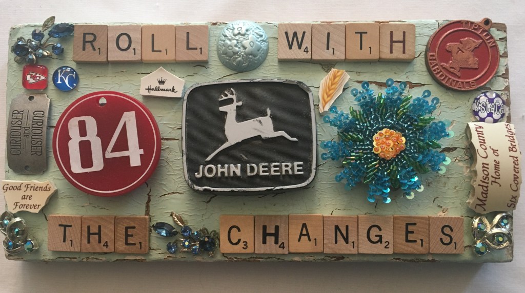 I made this for a friend from recycled wood and other repurposed treasures. It appears random indeed, but it does have meaning. I hope to have more time in ACT TWO to complete more projects like this.