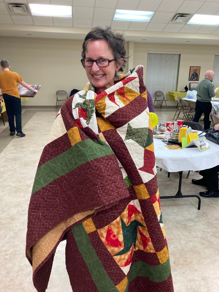 1. Congratulations to the Spell It Sisters for winning second place. Those were some hard words to spell. Congratulation Kathleen on winning the beautiful quilt to keep you warm. So happy for all of you to be able to have a fun evening together. Thanks for sharing the story and the pictures.
