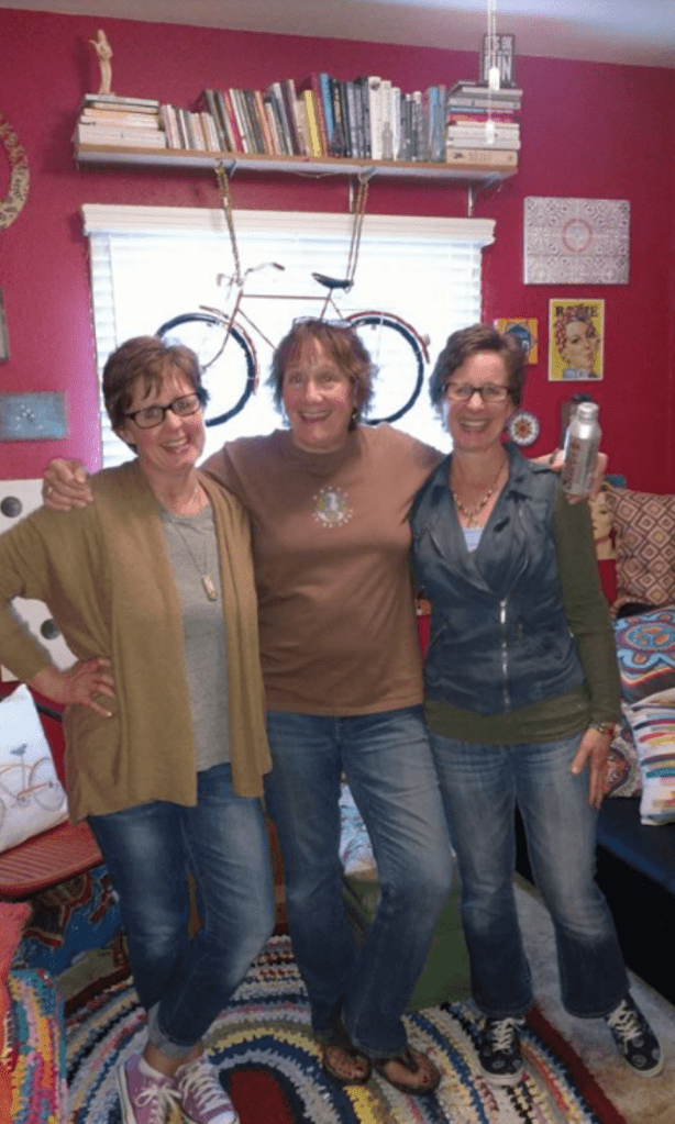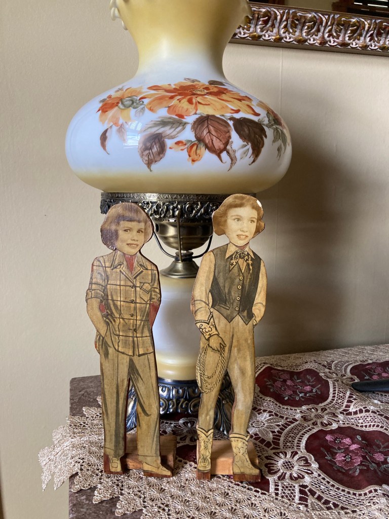 *Bonnie and Judy, the sisters pictured on these wooden garage sale treasures, joined us once again. They like to tag along when Gail and I travel, but they stay at home when Suzanne joins us because there is no third sister for them. We realized they are indeed our doppelgangers from our younger days–look closely.