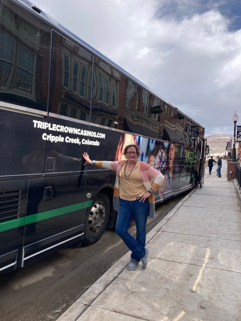 The casinos do not allow pictures at the tables, so we captured a picture of Jimmy as he boarded the bus back.