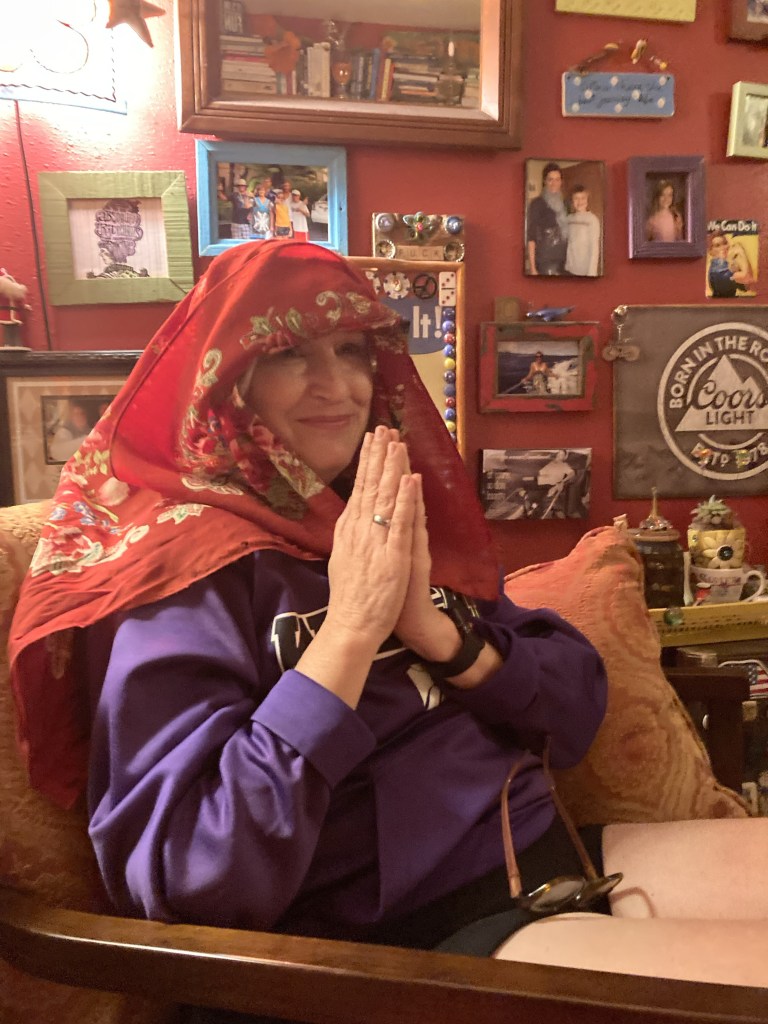 I am not as pious as the picture of Shari praying in the scarf, but I say a prayer of thanksgiving every day for the gifts of my sisters, and for the “experience” of being their sister. They cry with me in the bad times, and laugh with me in the good times. And, we know the importance of having fun.