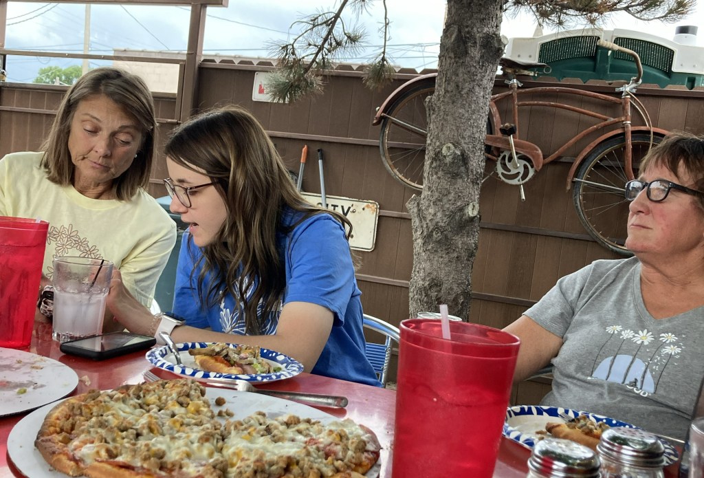 Gail’s daughter Lydia (center) joined us for pizza Thursday evening and our friends Mary and Cin-Cin (left) were able to meet us as well on the patio at Legends Bar and Grill. Managing this establishment is one of her undertakings. This is, of course, on top of her other full-time job. (Mary and Cin-Cin were the two dear friends who accompanied me to the top of Pike’s Peak on March 4th (Closer to Heaven, March 5th, 2023).