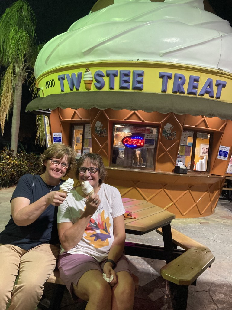 Now, being Kansas girls, we know about hot weather. Any kind of weather, really, except hurricanes. Gail and Suzanne still long to have the opportunity to have a hurricane party, but it was not meant to be. We did, however, see some remnants of Hurricane Ian from last year in Fort Myers.