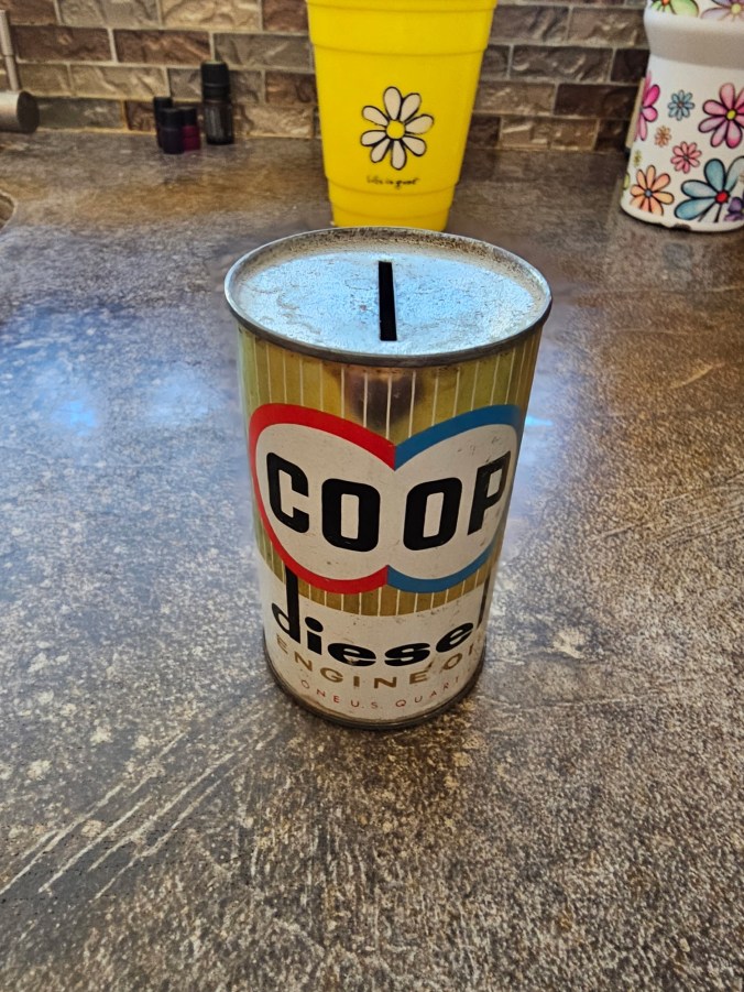 Gail, Suzanne and I remember vividly that Mom and Dad always had a bank on the kitchen windowsill where they saved dimes. This started out as a vintage metal Co-op can/bank, and evolved into a Tootsie Roll Bank, the foot-long cardboard ones that the Knights of Columbus used in their Tootsie Roll drives after Mass to collect money for individuals with intellectual disabilities. Dad was an active member, and we often ended up with the bank after the drive ended each year.