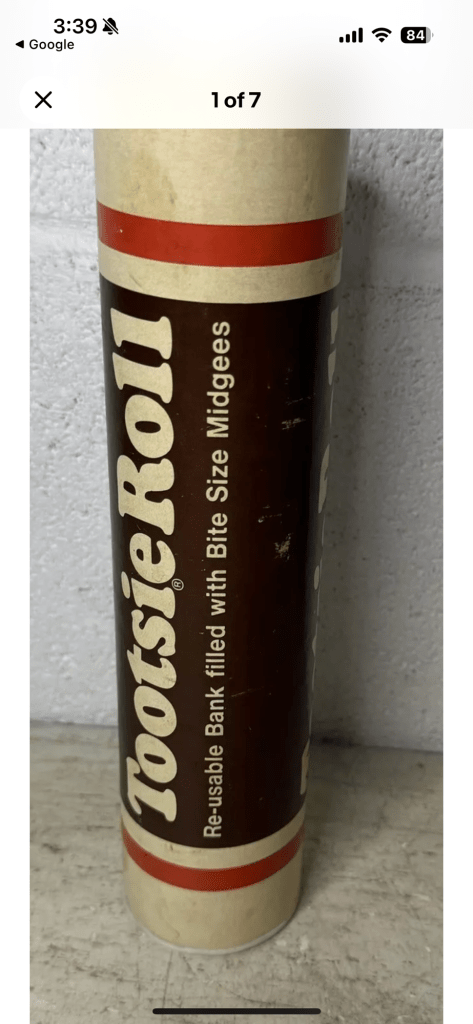 This is similar to the bank they had, Gail found it at an auction. We are not sure where the original one is. None of us have a Tootsie Roll bank, but this online image represents theirs.