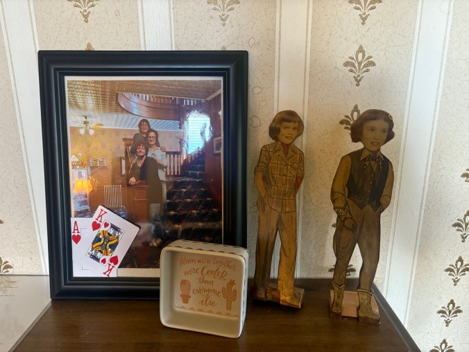 Judy and Bonnie came along, as they do when Gail and I travel together. They are two sisters I found at a garage sale who bear an uncanny resemblance to Gail and me in our younger years…and the proprietors are certain to welcome us with our framed picture waiting in our room upon our arrival. They are the best!