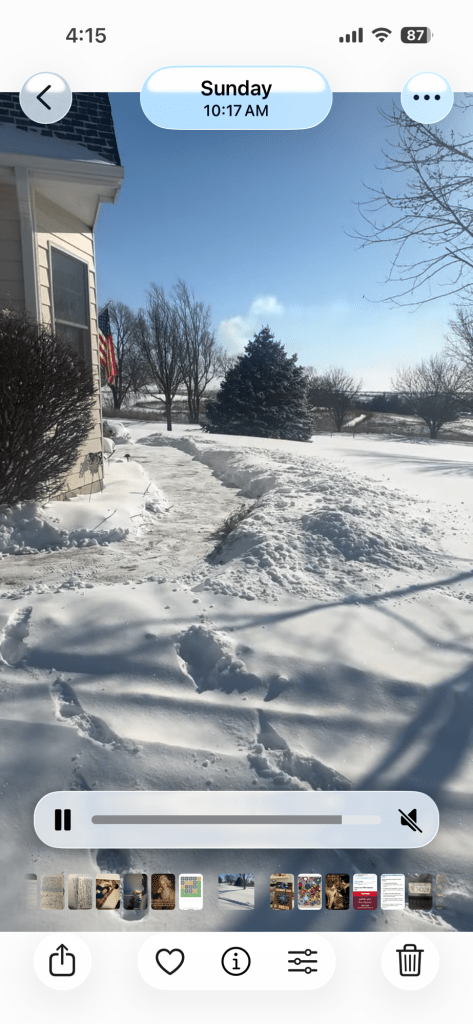Cardinal sightings are always a special treat, and they seem to show up in the most brutal cold and snow of January. My daughter-in-law Olivia, Mom’s birthday buddy, shared this from the video on her backyard birdfeeder: