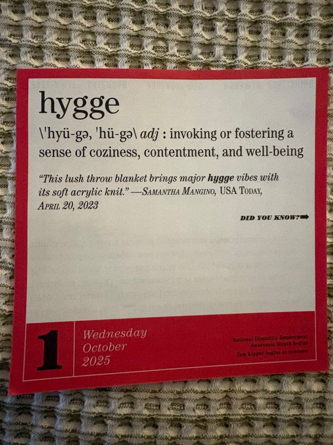 Pronounced “hugh-ga,” or “hoo-ga,” it has been my mantra for the winter. If the Danish and Scandinavians can do it, then I should at least try. So I have been, but with limited success. Better than last year perhaps, but I’m still fighting it all the way.