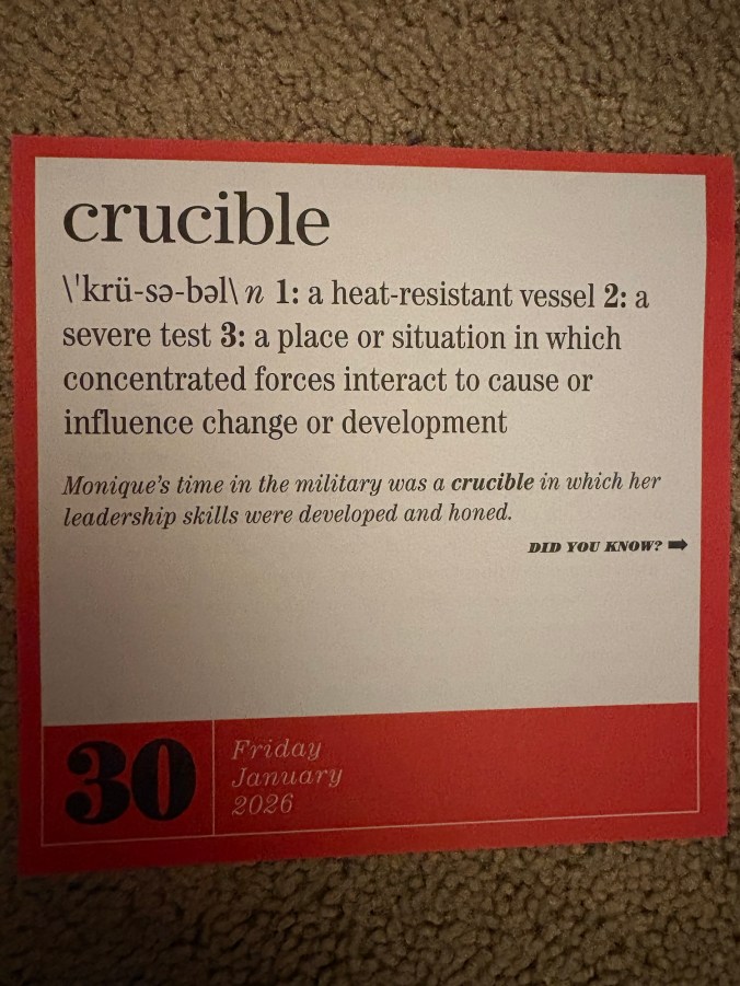 We should also consider “one more January” as “one less January,” even if it is a crucible. Every day is a gift, no matter what the weather. Even if January feels like it is 6,184 days long.