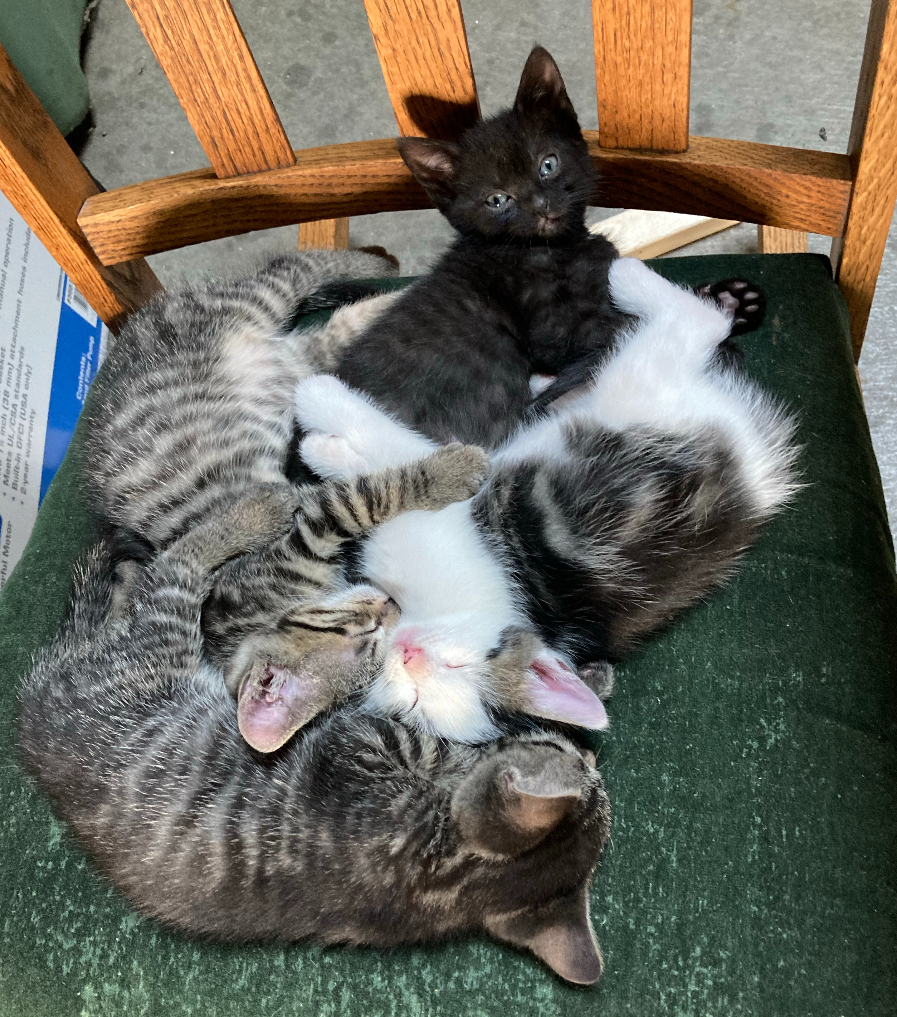 The kittens don’t sit still for petting as long as they did even a few weeks ago, but that is the feline circle of life. Just like toddlers, they are too busy to be held when there is fun to be had. And that’s the way it should be.