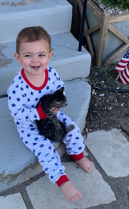 The two female kittens made this little boy very happy; “Kitty” and “Pepper” are his first pets.