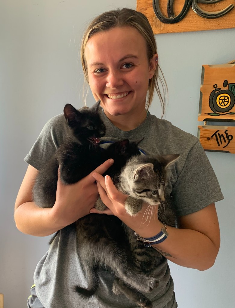 Enter Annie–Angel Annie, as she deserves to be called. She came highly recommended from a friend, and she was home from college just a few miles down the road. She loved cats, and was up all night anyway, she said, as many college students are. She came over with her dad, completed Sue’s crash course in syringe-feeding two-day old kittens, and took them home for the night. We were in one-day-at-a-time mode.