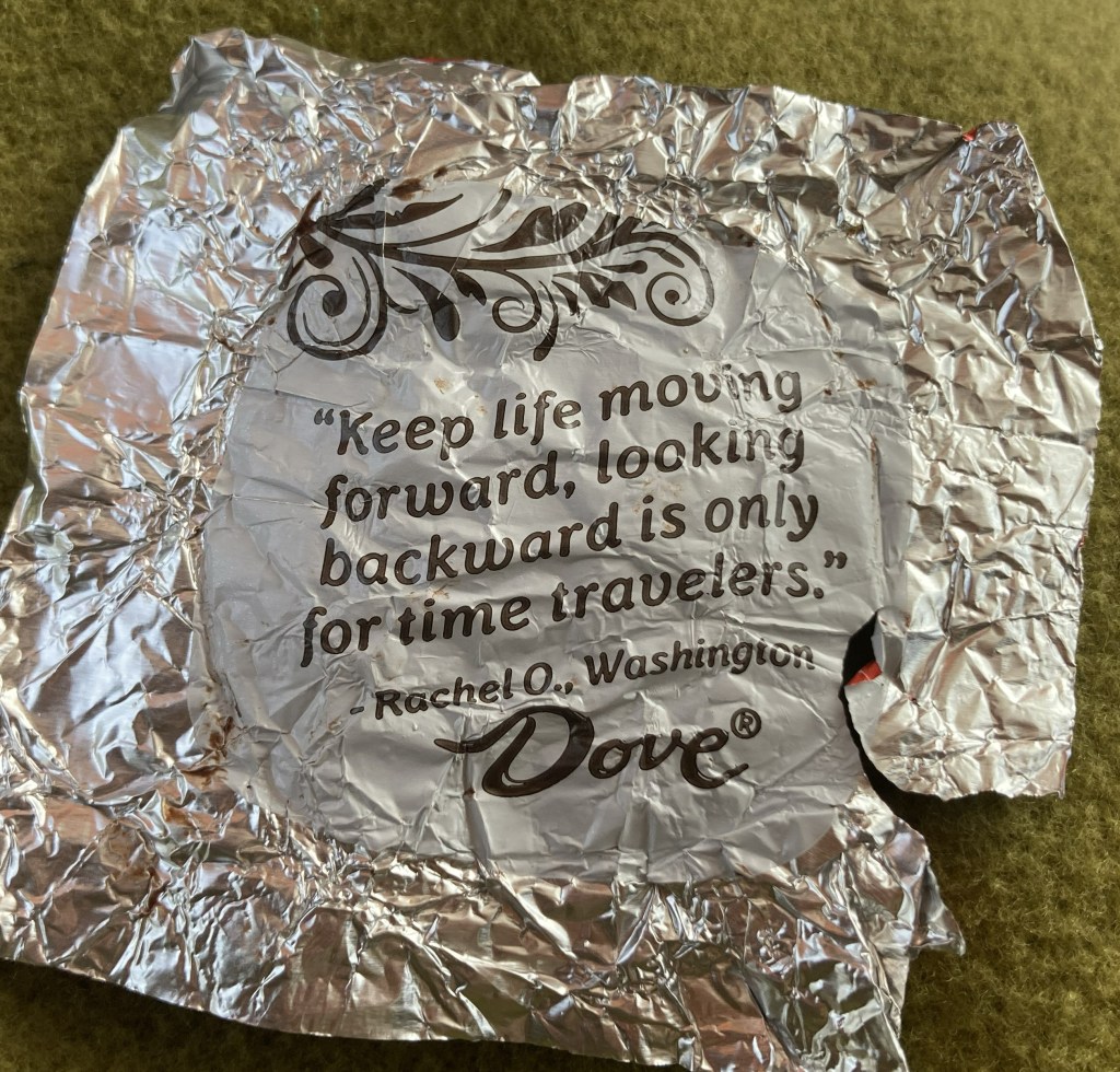 As I sat facing Mary and Cin-Cin looking backwards down the mountain out the window as we moved on forward, I decided it was time to break out the Dove chocolates I brought along, one for each of us. I doled out theirs, and opened mine.