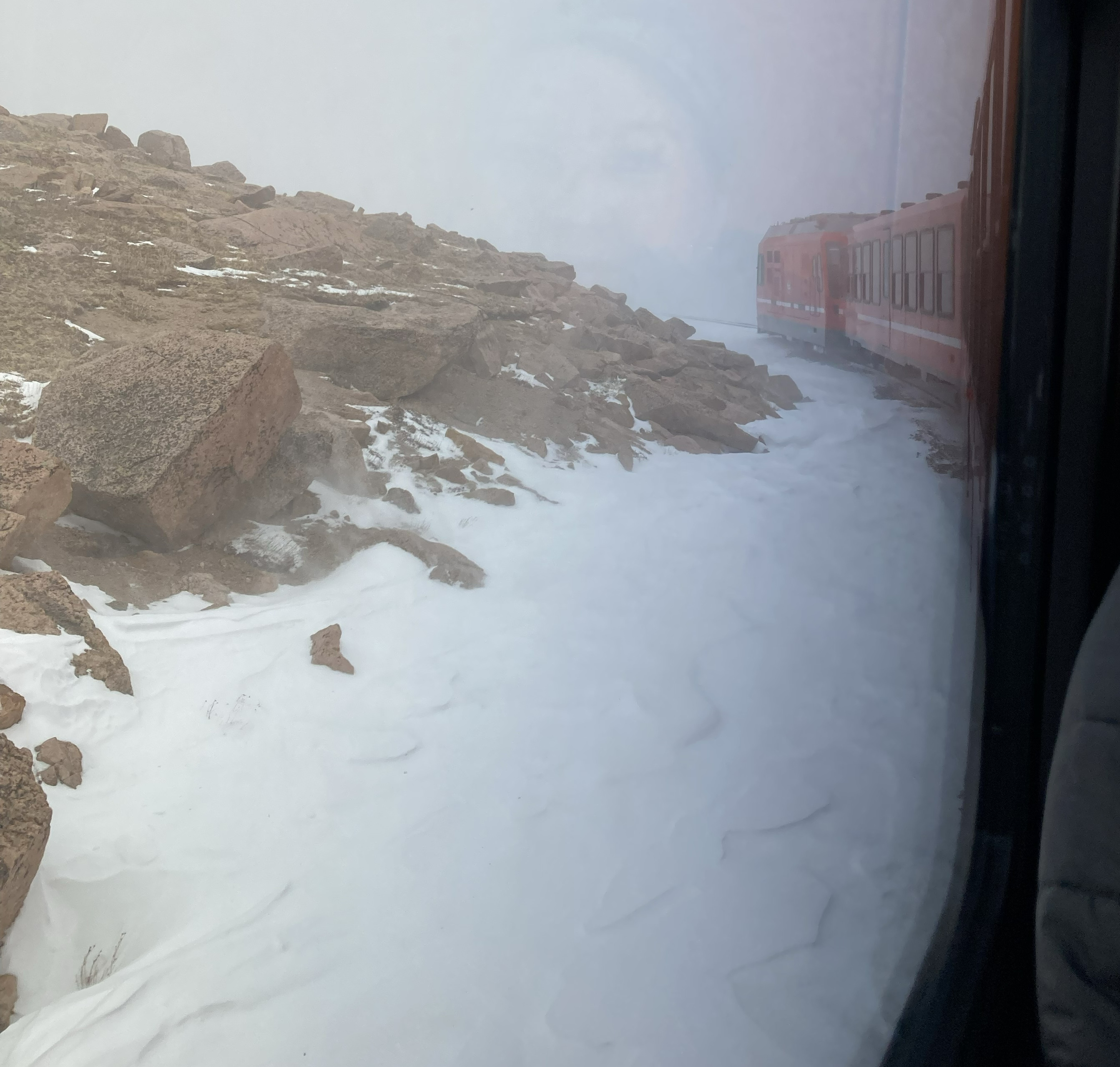 I have long wanted to return to the top of Pikes Peak via Cog Train on one of our trips, but since it reopened only last year after six years of repair and renovation, we hadn’t yet made it. I decided it was time again, and Mary, Cin-Cin and I made the trip. Gail and Margaret opted to stay back and enjoy the day in Cripple Creek.